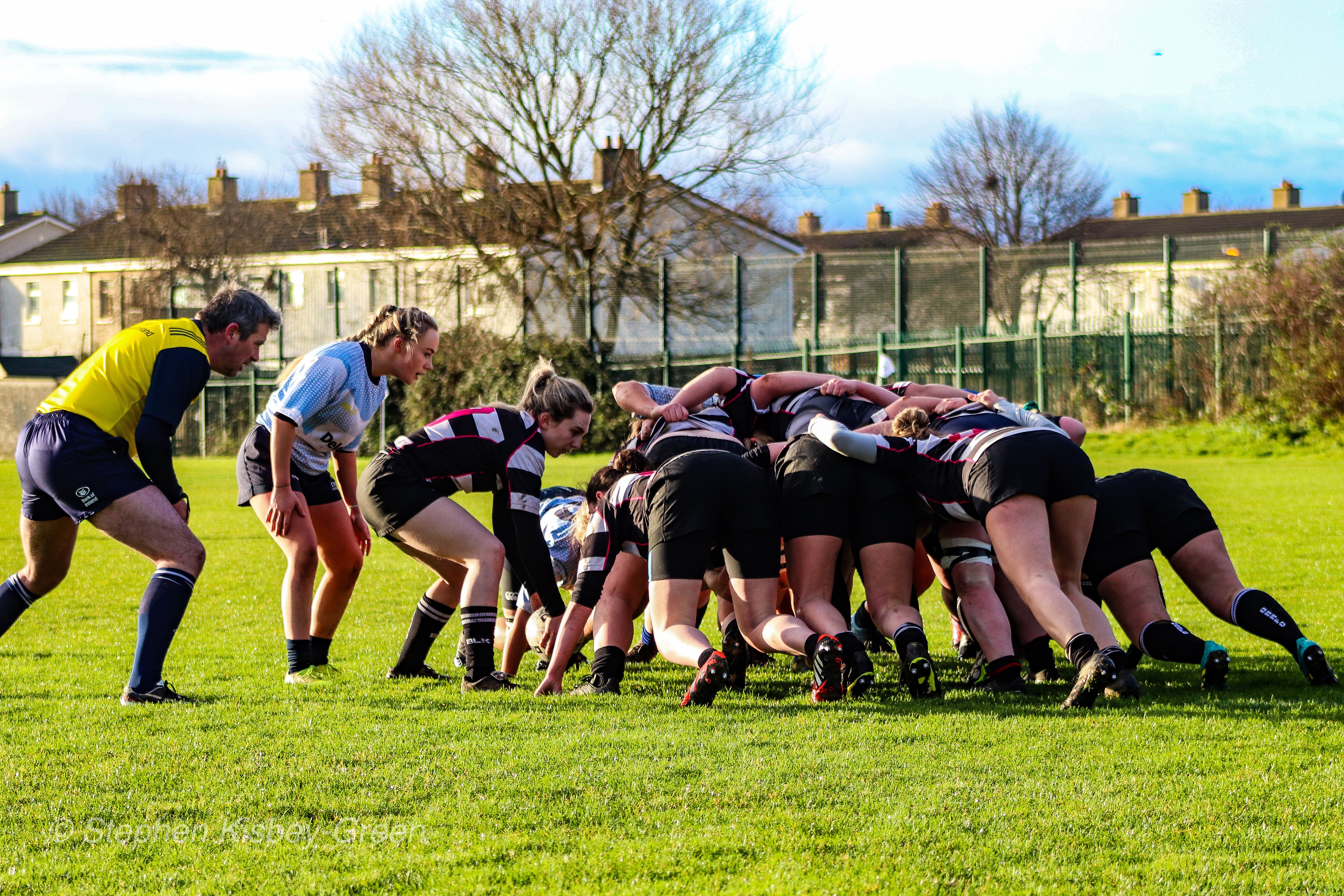Scrum time for DCU LRFC and Old Belvedere RFC. Photo: Stephen Kisbey-Green Posted on January 13, 2020 by Stephen Kisbey-Green