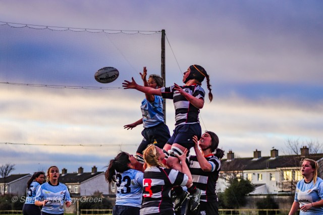 Zoe Valentine competes at the line out for DCU. Photo: Stephen Kisbey-Green Posted on January 13, 2020 by Stephen Kisbey-Green